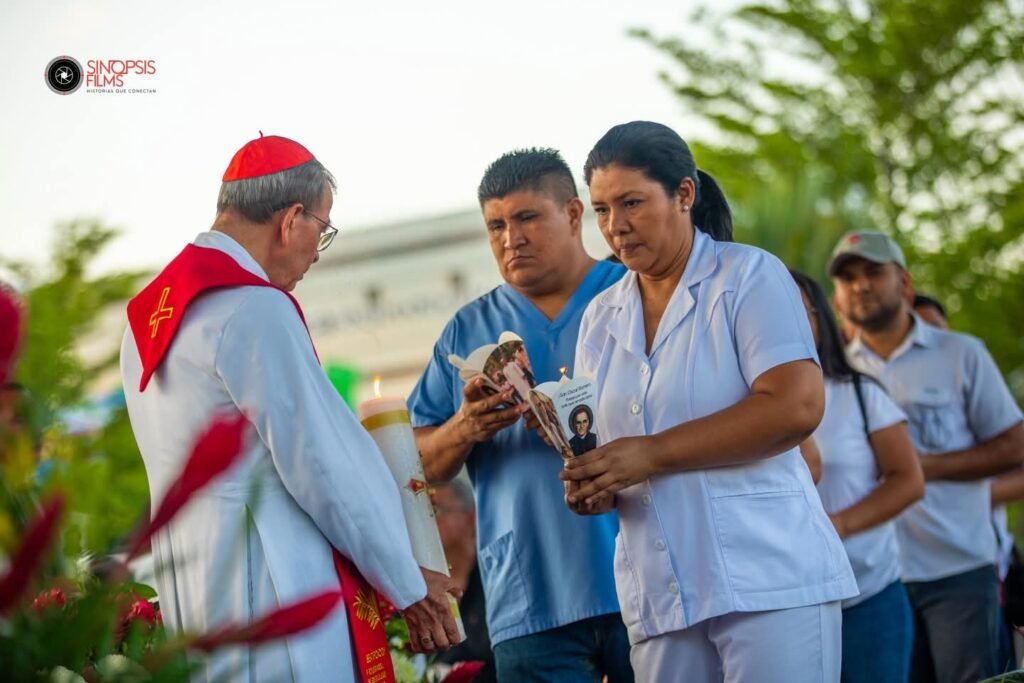 Durante el acto fueron presentados niños, una familia y diversos profesionales entre ellos personal de salud, un maestros, un periodista, un abogado y un vendedor en representación de los sectores que en los últimos días han enfrentado fuertes crisis bajo el actual gobierno. La actividad se desarrolló como un símbolo de esperanza, al destacar la luz de Cristo, inspirada en la figura de San Romero, ante la difícil situación que atraviesa el país centroamericano.