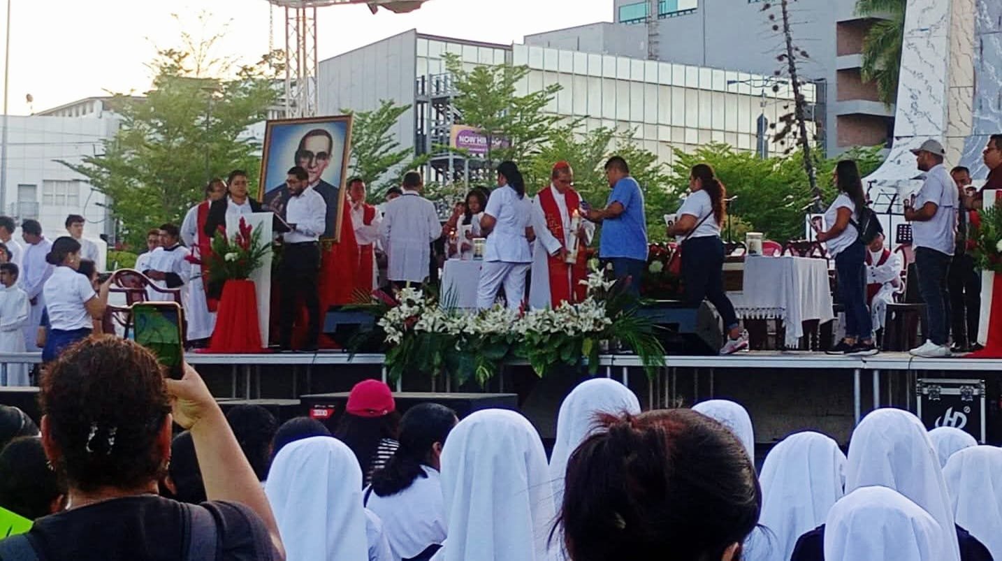 Durante el acto fueron presentados niños, una familia y diversos profesionales entre ellos personal de salud, un maestros, un periodista, un abogado y un vendedor en representación de los sectores que en los últimos días han enfrentado fuertes crisis bajo el actual gobierno. La actividad se desarrolló como un símbolo de esperanza, al destacar la luz de Cristo, inspirada en la figura de San Romero, ante la difícil situación que atraviesa el país centroamericano.