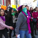 Otra ponente de los manifiestos ha dicho: «Denunciamos la justicia patriarcal, no queremos la ley mordaza. Decimos basta de financiamiento público a la Iglesia Católica y queremos hacer fuera sus rosarios de nuestros ovarios».