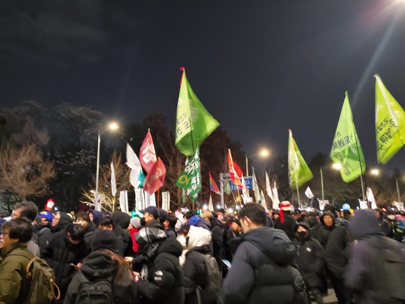 Al regresar del trabajo, pude apreciar a miles de personas recorriendo las calles de la zona de Yeongdeungpo-Gu para exigir la renuncia del presidente Yoon Suk-yeol, después de que una moción de destitución contra el mandatario no pudiera salir adelante en el Parlamento por la falta de quórum.
