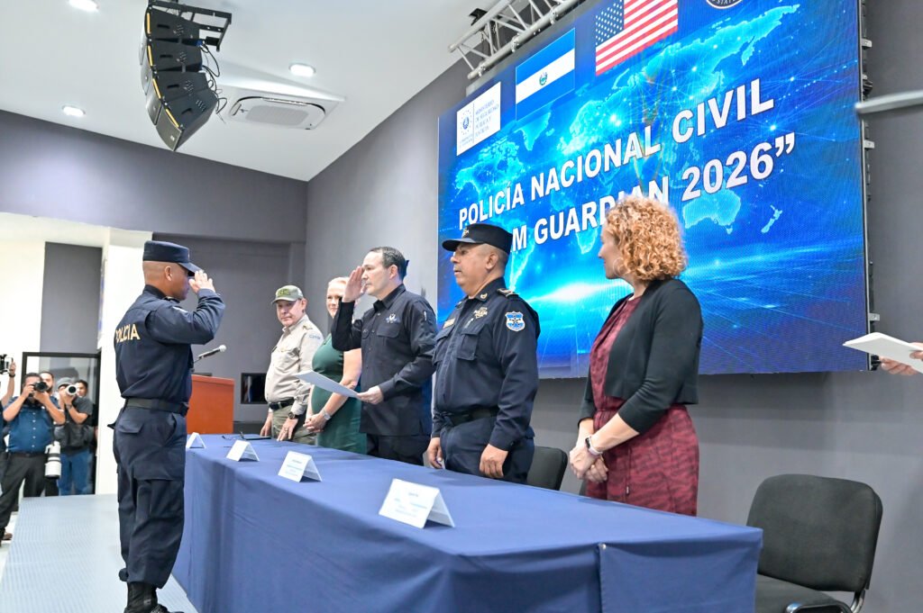 El Salvador – Como parte de los esfuerzos de cooperación bilateral, el Ministro de Seguridad Pública y Justicia, Gustavo Villatoro, junto a la Encargada de Negocios de la Embajada de los Estados Unidos en El Salvador, Naomi Fellows, encabezaron el cierre de un proceso formativo dirigido a oficiales de la Policía Nacional Civil y de la Dirección General de Migración y Extranjería, en el contexto del ejercicio CENTAM GUARDIAN 2026.