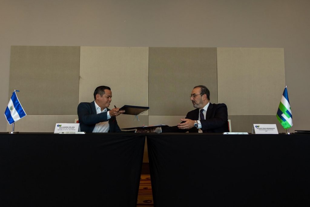 El Salvador ratificó su intención de incorporarse como país miembro al Banco de Desarrollo de América Latina (CAF) con la firma del convenio y la suscripción de acciones nominativas de la Serie “B” correspondientes al capital ordinario de la entidad bancaria.