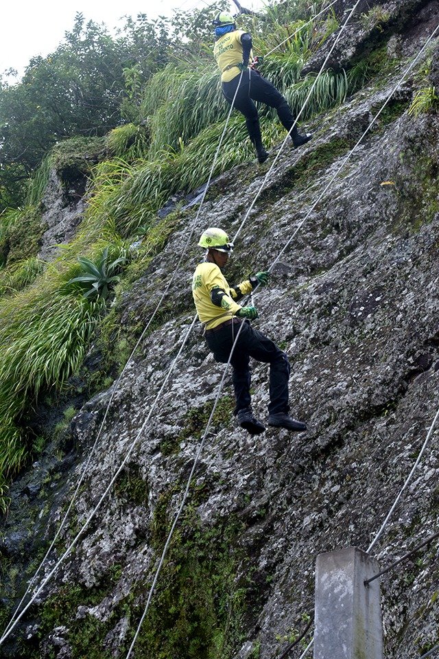 Los voluntarios realizaron una caminata desde la entrada al Parque Balboa en Los Planes de Renderos hasta el turicentro de la Puerta del Diablo, donde acamparán para iniciar los descensos libres y con sus respectivas víctimas.