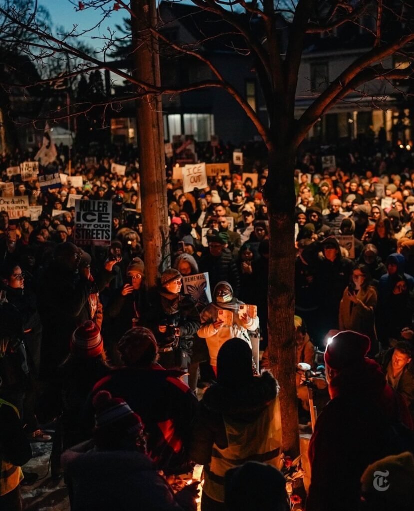 El tiroteo ha provocado protestas y vigilias en Minneapolis y en otras ciudades de Estados Unidos, con miles de personas exigiendo el fin de las prácticas agresivas de ICE y justicia para Renee Good. Muchos manifestantes han levantado carteles con consignas como “ICE, fuera de nuestras comunidades” y han pedido una reevaluación del papel de las agencias federales en las ciudades.