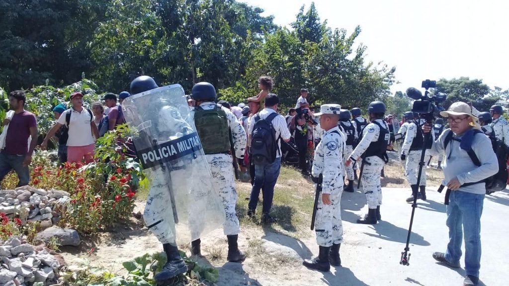 De acuerdo a información distribuida por activistas de derechos humanos, que dan apoyo a los migrantes centroamericanos, agentes de la Guardia Militar de México trabajan de la mano con agentes federales de Estados Unidos para detener la caravana y evitar que los centroamericanos circulen por el territorio mexicano.