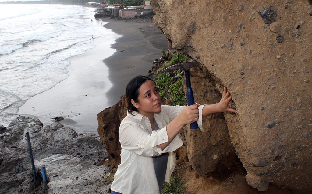 *Ruth Campos, se especializa en Paleomagnetismo en depósitos aplicado a tsunamis. “Esta área estudia el campo magnético terrestre preservado de las rocas. Permite conocer el historial de la tierra y cambios geológicos. Las rocas cuando se forman, registran la dirección e intensidad del campo magnético del momento en que ellas se forman, queda congelado en la roca y sirve como una huella del pasado. Es una técnica novedosa, que por primera vez se hace en el país y Centroamérica. Permite evaluar la historia de fenómenos naturales”.