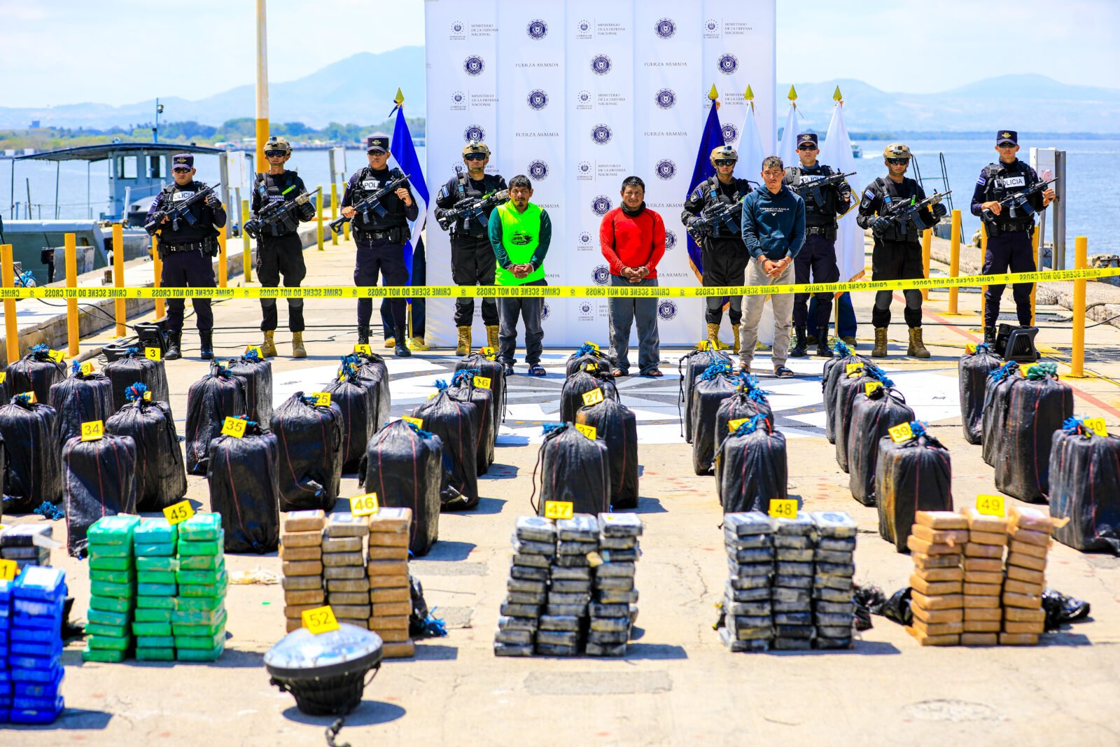 El Salvador – El Gabinete de Seguridad del gobierno salvadoreño presentó la incautación de 1.5 toneladas de cocaína, la cual está valorada en $37.5 millones, lo cual representa un fuerte golpe al narcotráfico internacional.