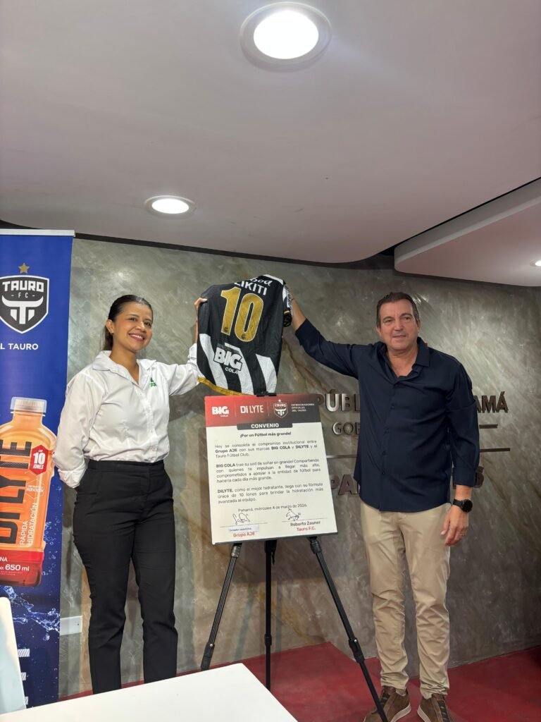 Centroamérica- . La multinacional de bebidas AJE anunció oficialmente su alianza estratégica con Tauro FC, uno de los clubes más exitosos del fútbol panameño. A través de sus marcas Big Cola y Dilyte, la compañía se suma como patrocinador del equipo, reafirmando su compromiso con el deporte, el bienestar y el desarrollo de las comunidades en Panamá.