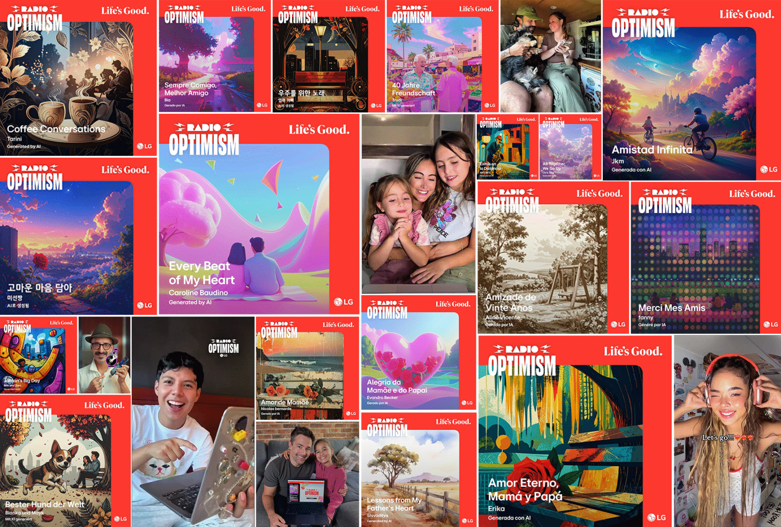 Diseñada para contrarrestar la sensación de desconexión que a menudo se asocia con las redes sociales, Radio Optimism invitó a los usuarios a escribir un mensaje para un ser querido, elegir un género y un estilo, y generar una canción única creada por IA. Al convertir la música en un gesto sincero, la campaña llevó la promesa de marca Life’s Good de LG a los espacios digitales donde las personas se conectan con mayor frecuencia.