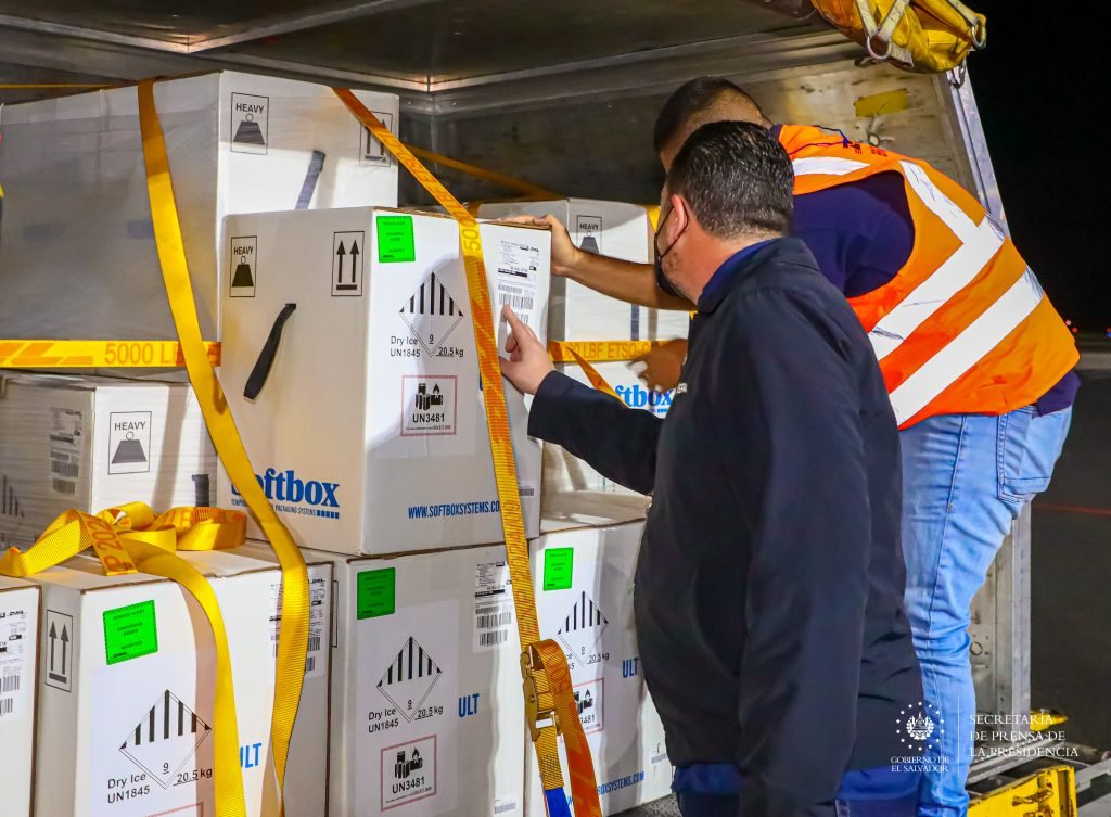 El Salvador – El lote número 44 de dosis de vacunas contra el Covid-19, recibieron la madrugada de este viernes las autoridades de salud del gobierno salvadoreño, los paquetes de vacunas son en total 205, 920 dosis del fármaco de la firma Pfizer, por medio de compra directa.