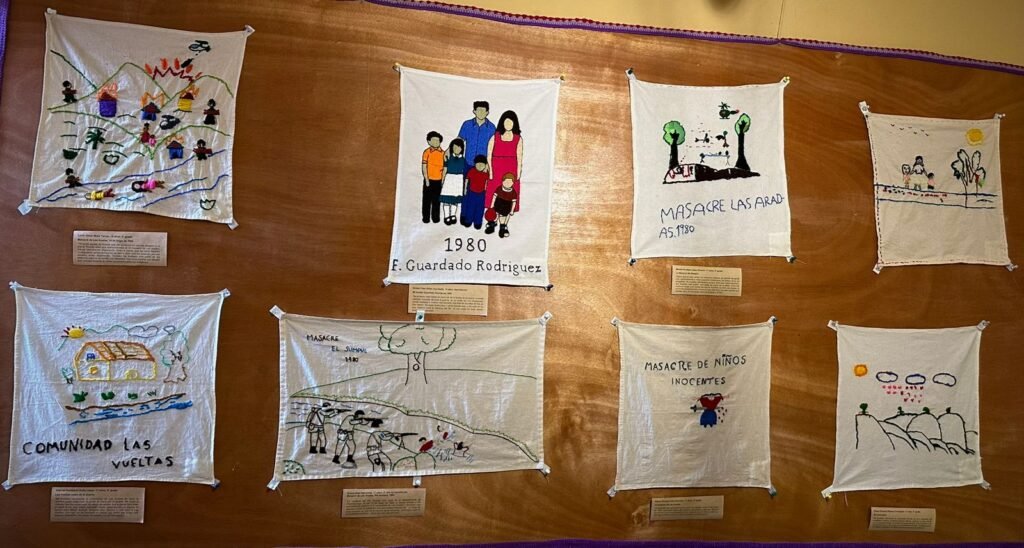 “El resultado final de este libro creativo, esta mezcla de fotografía y testimonio, poesía, canción y arte plástico, nace y se entreteje de la relación de cariño” entre Rafa y Chalatenango, dice parte de la introducción del texto con fotos publicado y presentado esa tarde de febrero pasado en el que además hubo muestra de música, danza, coloridos tejidos de mujeres pobladoras del departamento que se convirtieron en trazos y trozos de denuncia de la cruel realidad que vivieron en ese departamento. Al cierre hubo una muestra de danza de las tejedoras y los asistentes compartimos un pedazo de semita y café.