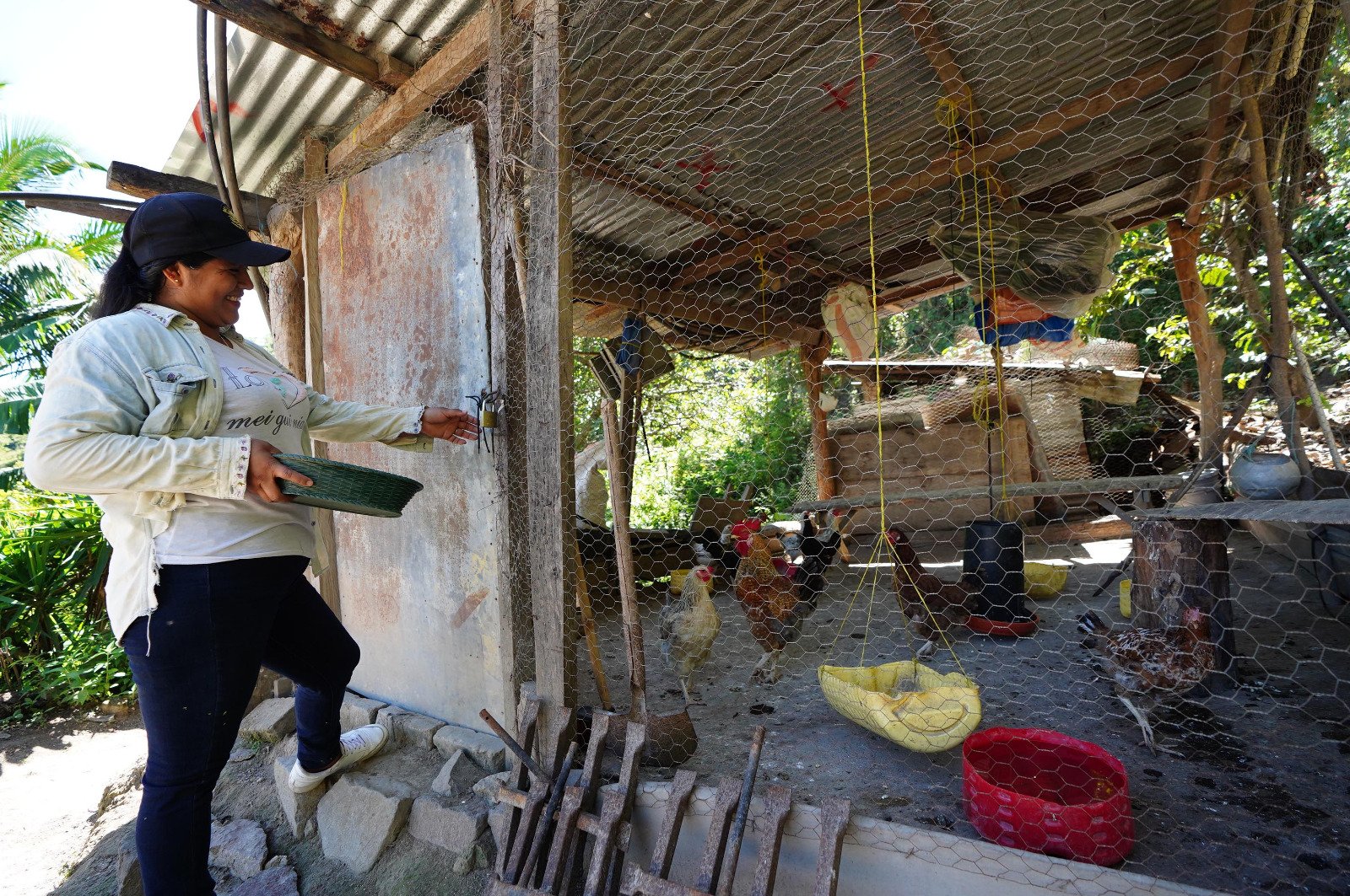Fátima es madre soltera, tiene una hija de 8 años, y junto a su madre habita en la comunidad Changallo, del cantón Santa Cruz La Vega, municipio de San Francisco Chinameca, departamento de La Paz, donde sobrevive del cultivo de granos básicos para alimentar a su familia.