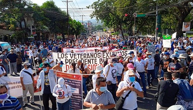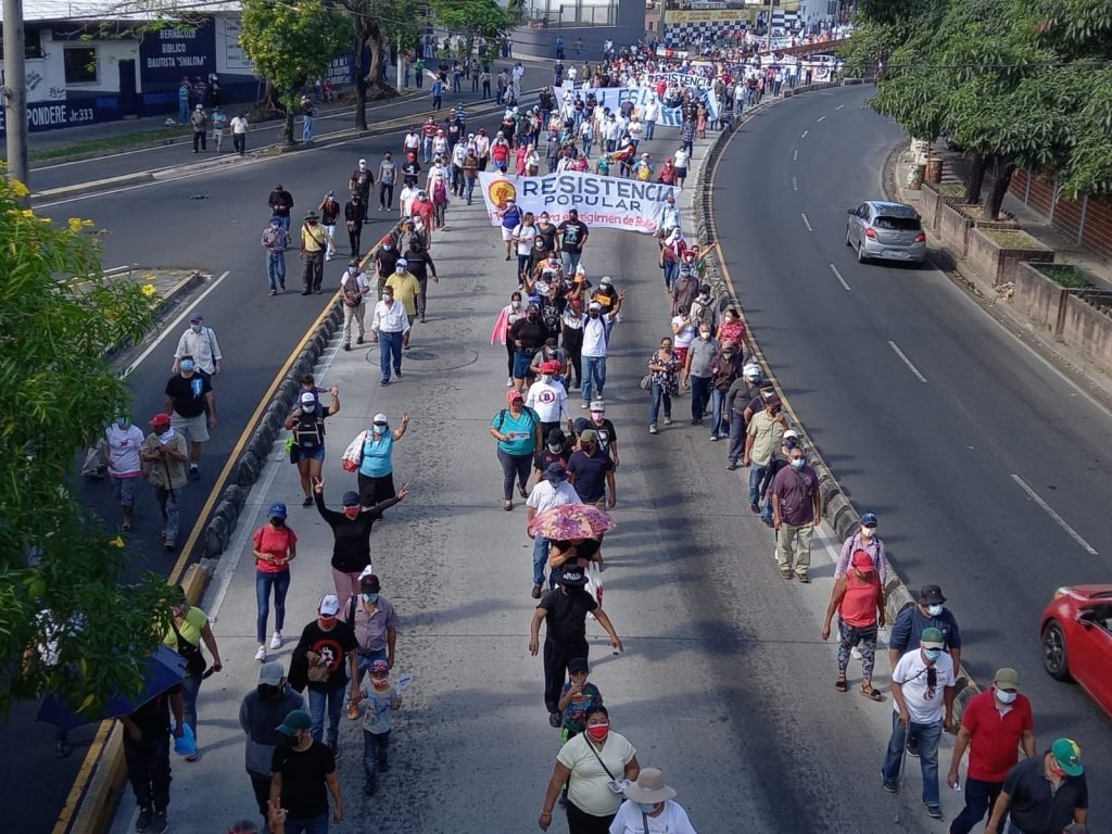El Salvador – Organizaciones sociales, dirigentes políticos, gremiales de profesionales, veteranos del conflicto armado, entre otras agrupaciones y sociedad de la sociedad civil opositora al gobierno del presidente Nayib Bukele, han salido este domingo en una manifestación con dirección al centro de San Salvador.