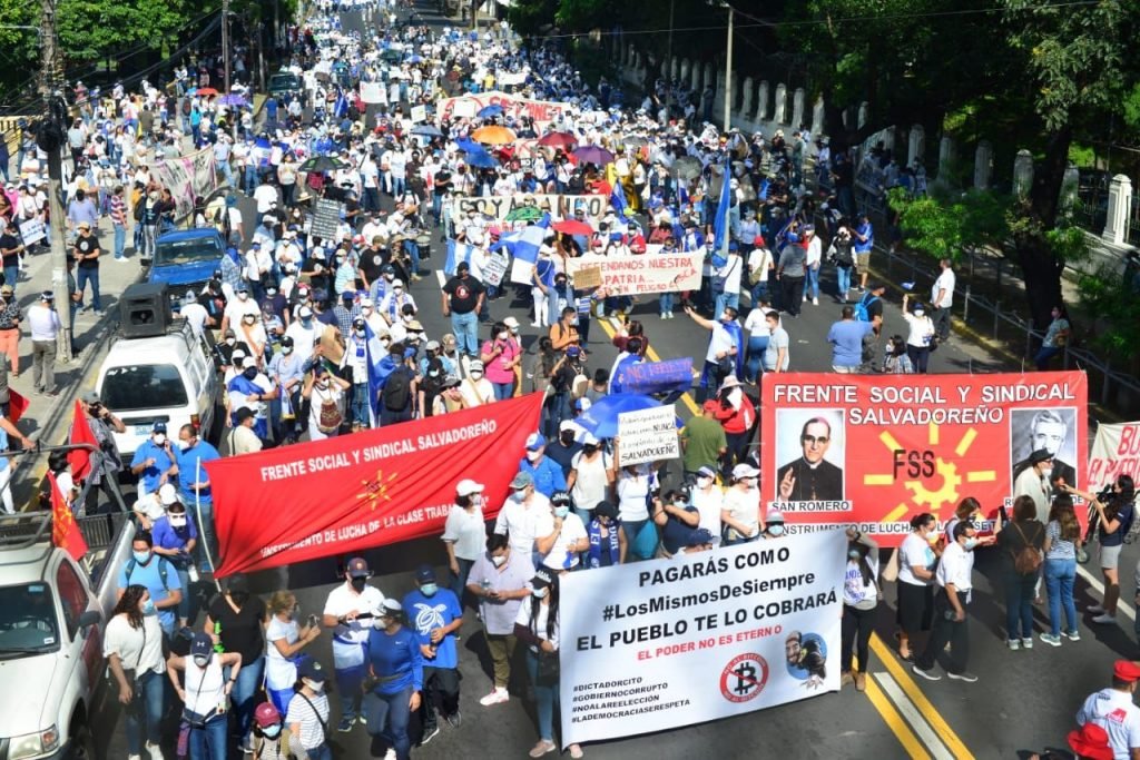 Grupos sindicales, asociaciones ciudadanas y personas particulares, manifestaron su descontento por la Ley del Bitcoin, las intenciones de reformar la Constitución y la posible reelección del presidente, entre otras medidas polémicas que Nayib Bukele ha impulsado.