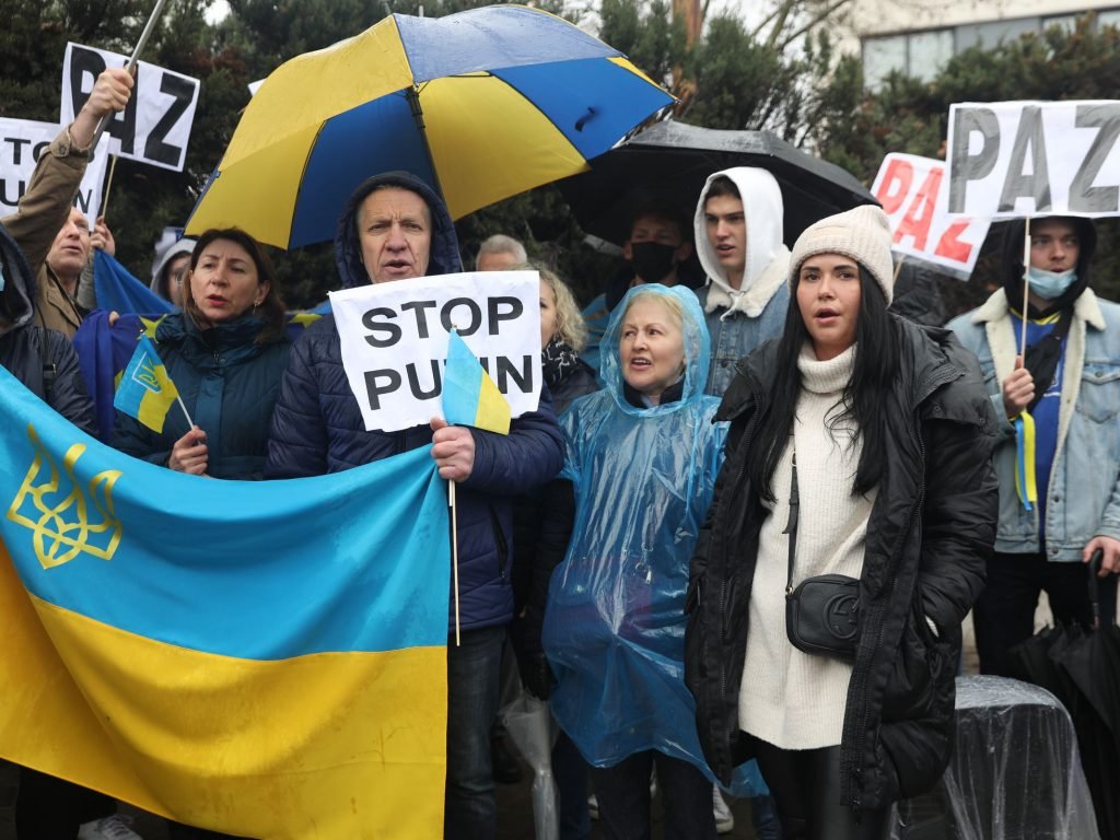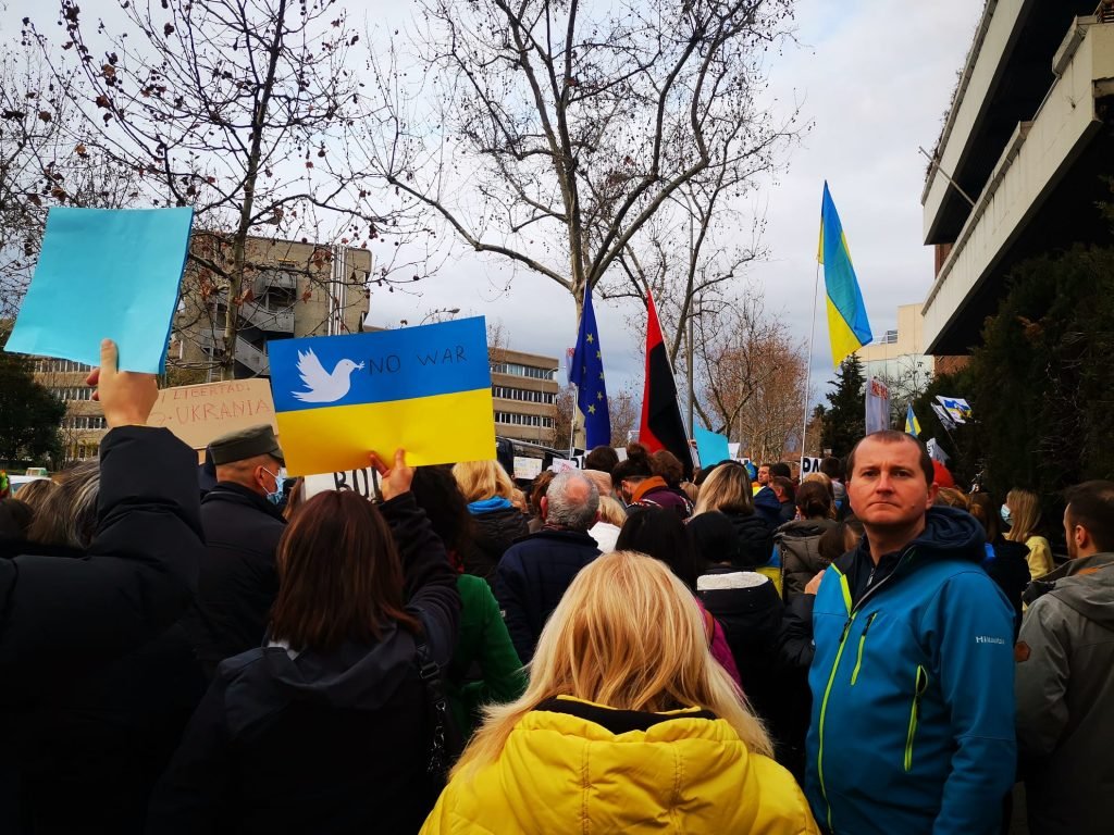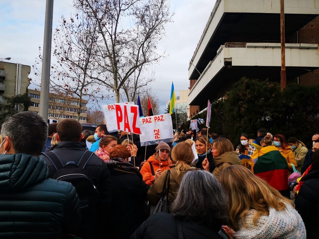 Cientos de personas se concentraron en el lugar para exigir el cese de la violencia y escalada militar en Ucrania.