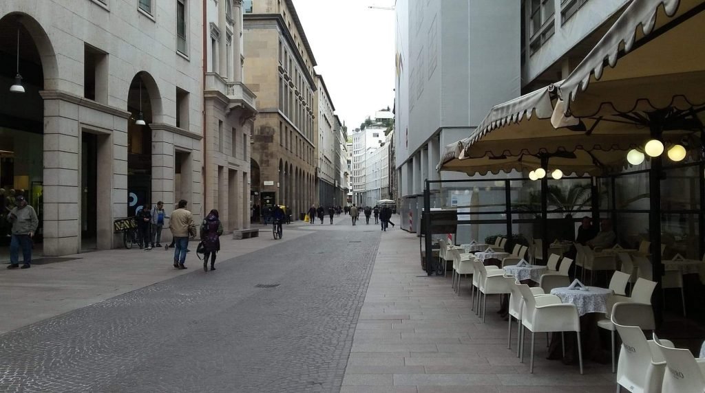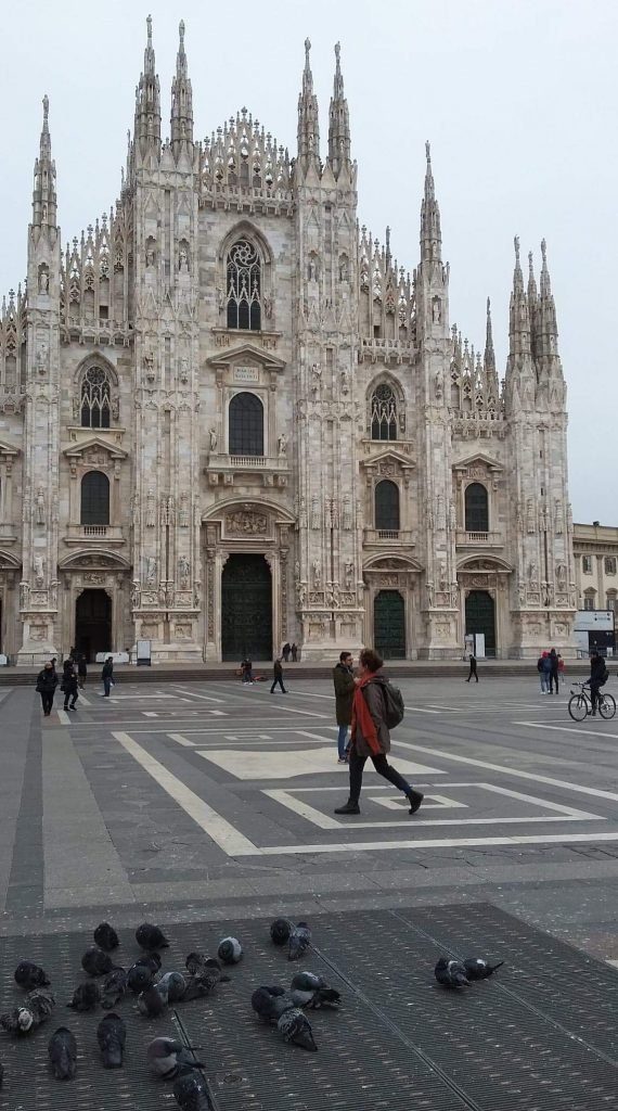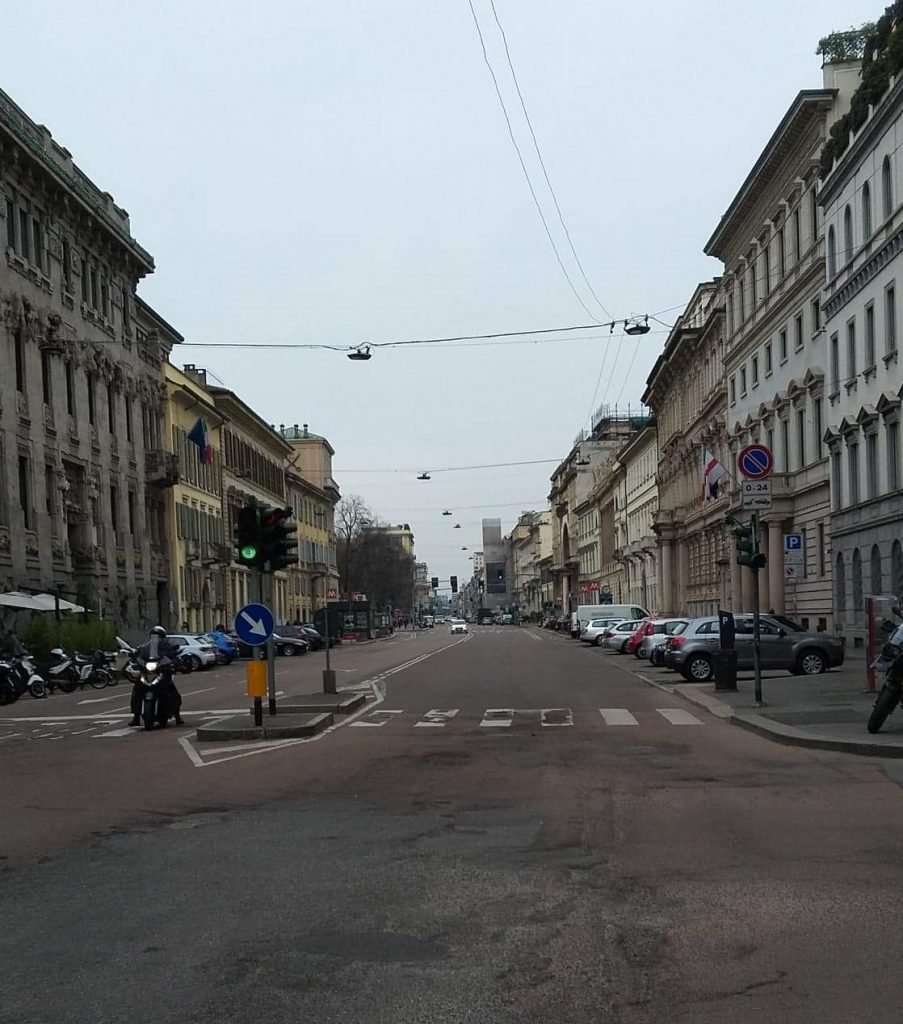 El Corso Venezia, uno de los ingresos principales al Centro Histórico de Milán, principal ciudad de Italia y de la región Lombardía; además uno de los diez destinos turísticos de Europa, luce desolado.Plaza Duomo, Catedral de Milán, en un día normal, cientos de turistas alimentan a las palomas y se fotografían frente a la histórica edificación católica.