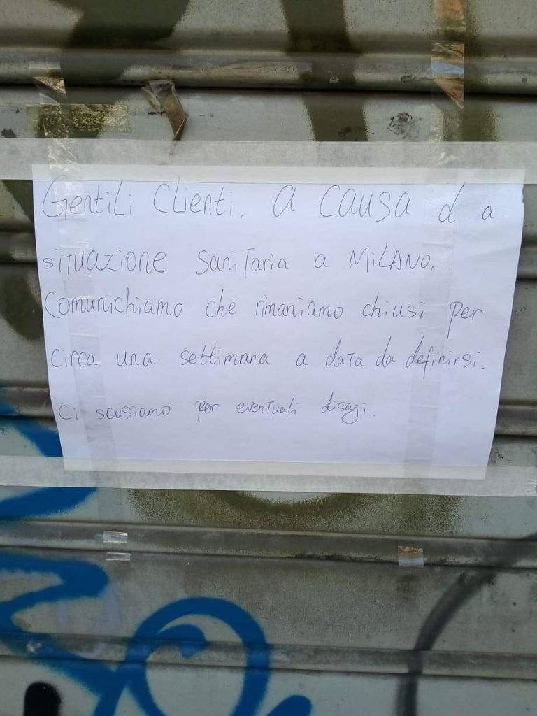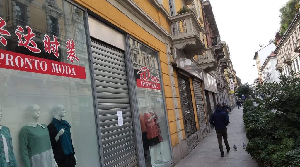 Barrio Chino, cerca del parque Sempione. Es uno de los sitios más transitas y de mayor comercio, que está abierto día y noche. Sin embargo, los comercios están cerrados y no hay turistas en sus alrededores.