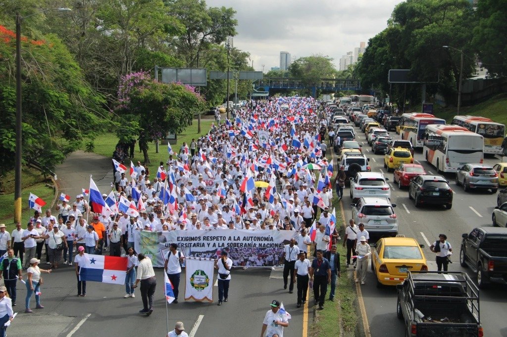 Miles de panameños marcharon el martes por las principales calles de la capital panameña y el interior del país para exigir respecto a la autonomía de la Universidad de Panamá. La protesta masiva también fue para adversar los acuerdos relacionados con el Canal y la seguridad firmados con Estados Unidos (EE.UU.), los cuales consideran violan la soberanía del país.